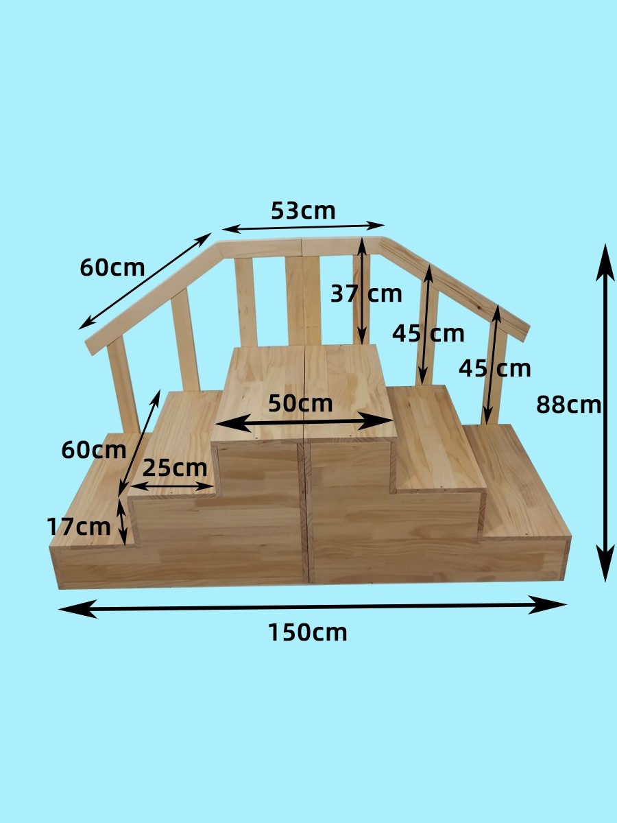 全梯長(zhǎng)150厘米,梯寬60厘米(不含扶手),平臺(tái)高51厘米,全梯總高88厘米(含扶手)。