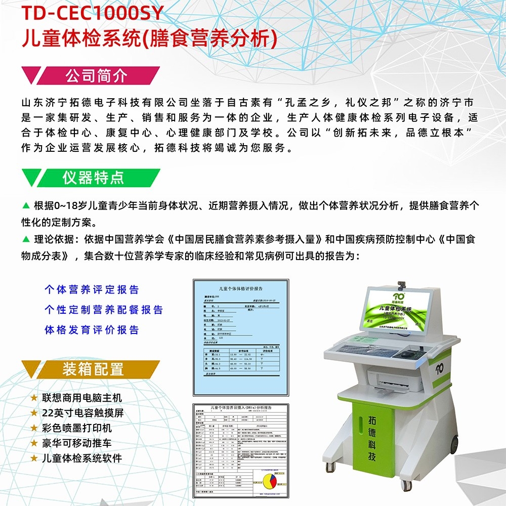 TD-CEC1000SY兒童體檢系統(tǒng)(膳食營養(yǎng)分析)